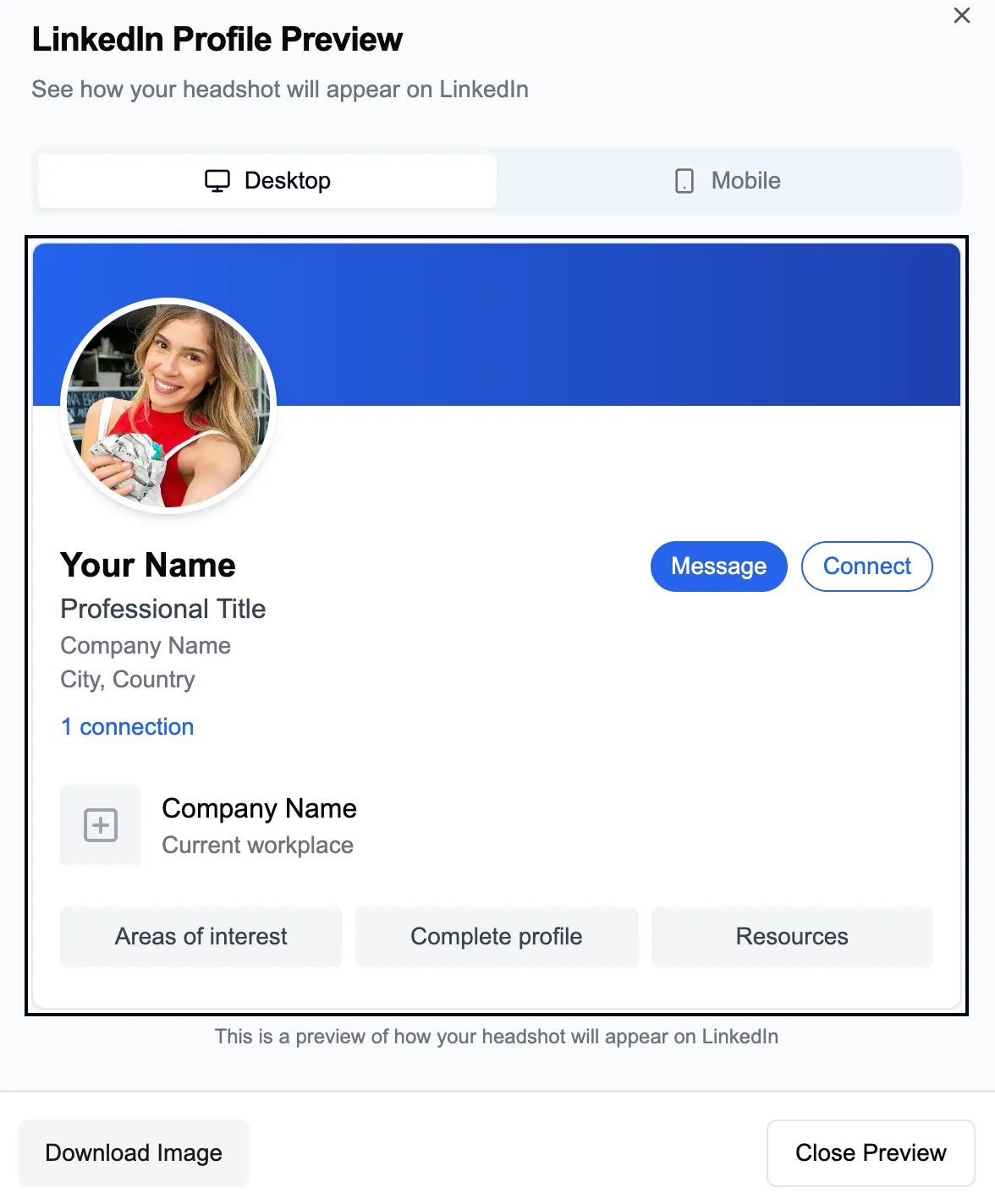 Your headshot will look crisp and professional whether viewed on desktop, mobile, or in the LinkedIn app.